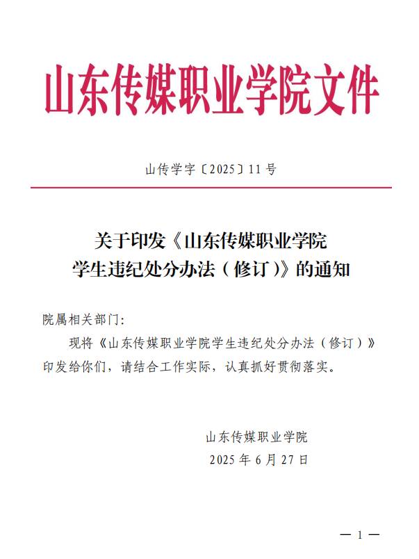 管理|《山东传媒职业学院学生管理规定》(山传学字〔2025〕5号)