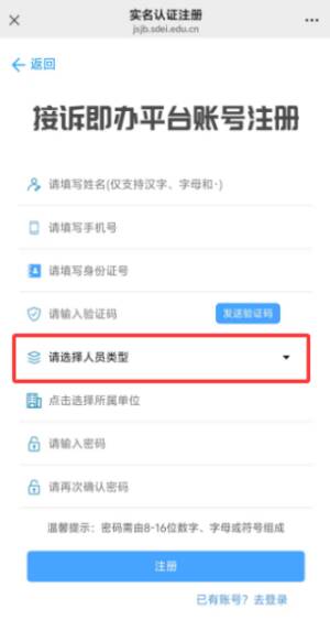 进入山东省高校接诉即办服务平台登录页面,点击右下角【注册账号】,跳转至接诉即办平台账号注册页面,点击【请选择人员类型】可选择教职工和学生身份,【点击选择所属单位】选择山东传媒职业学院(否则反馈的信息无法进行处理),最后点击注册即可完成账号注册。注册时的手机号即为登录账号。