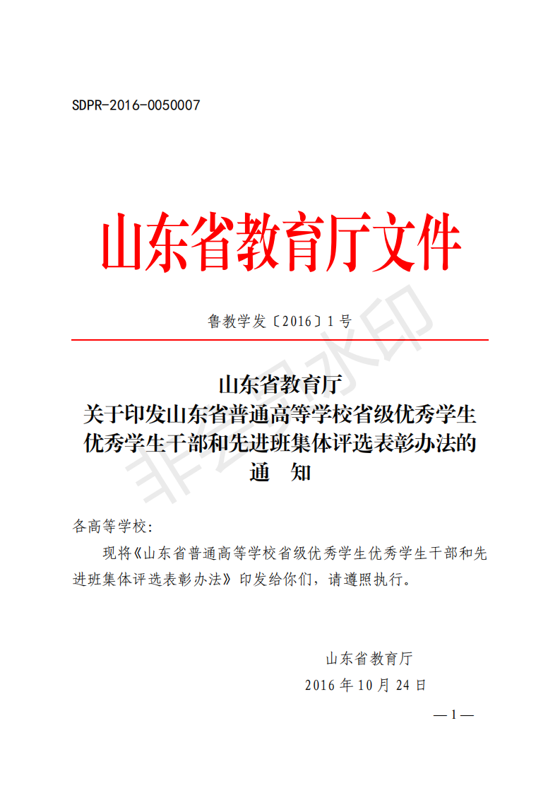 山东省教育厅关于评选高等学校优秀学生优秀学生干部和先进班集体的通知(鲁教学字〔2019〕1号).pdf