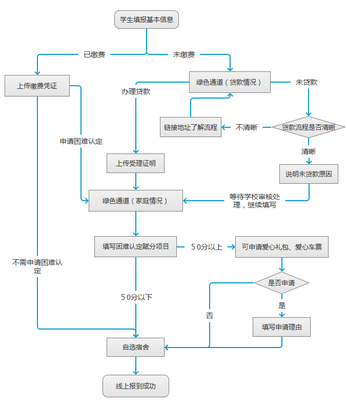 提高新生报到服务质量,服务日常教育教学工作,所有新生应收到录取通知书后,第一时间进行网上报到,网上数字报到时间为8月20日至9月5日。流程如下:
